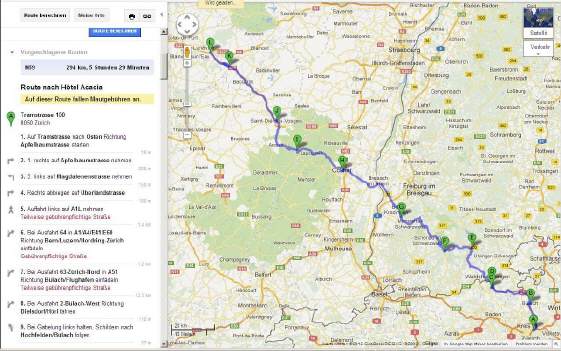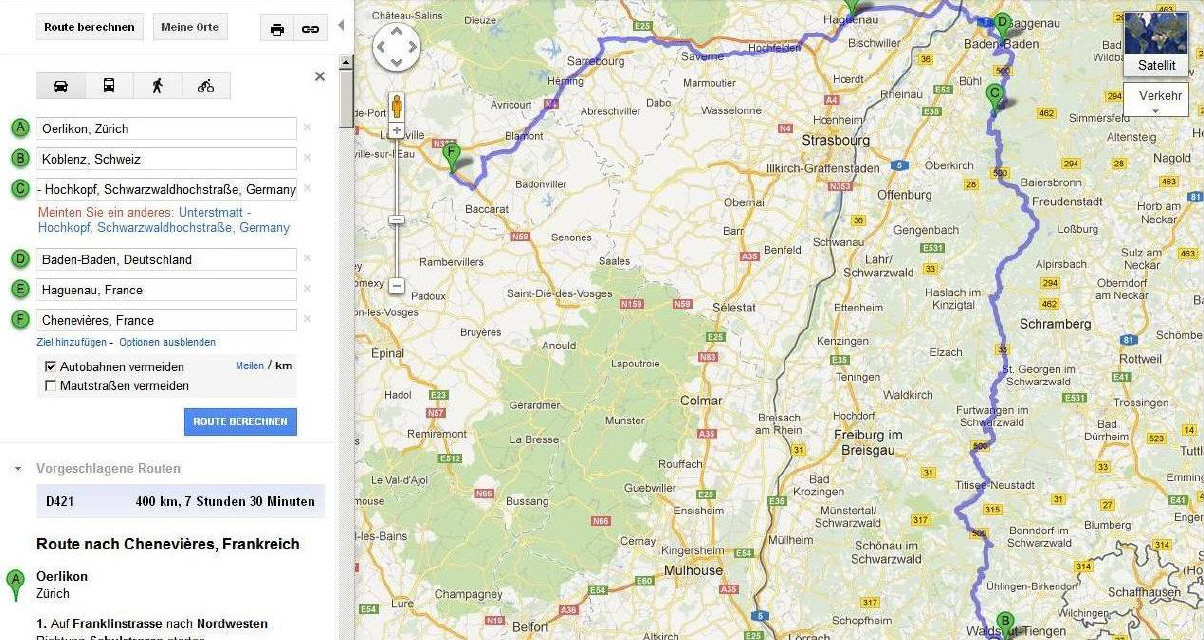 Eine zweite Gruppe trifft sich um 13 Uhr und fährt mit mir eine verkürzte Version auch über den Schwarzwald, aber nur bis Offenburg, ab wo wir einen direkteren Weg wählen. |