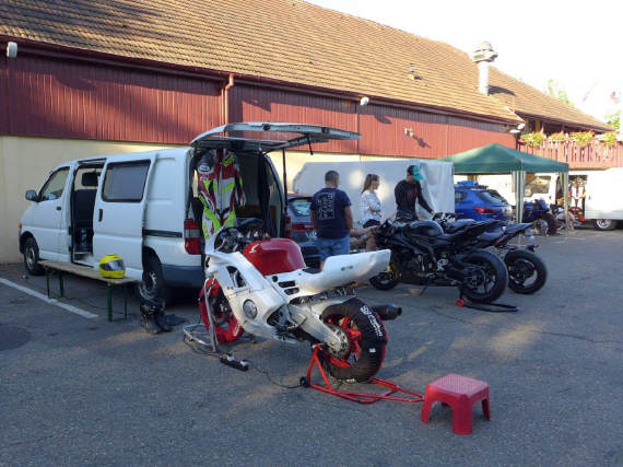 Nachdem ich mich anlässlich des TRACK DAYS mit Anneau du Rhin versöhnt hatte (ich hatte im Jahr 2000 bei Regen meine Honda GoldWing Aspencade geschrottet), und meine Arbeitssituation zu Hause nicht geändert hatte, meldete ich mich gleich bei Hansruedi Züger an: So fuhr ich bereits 8 Tage wieder Richtung Frankreich, diesmal ohne Hotelübernachtung.