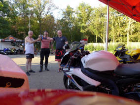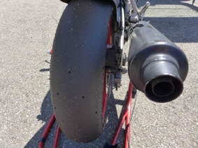 Seit einigen Jahren habe auch ich inzwischen auf Reifenwärmer umgestellt. So kann man vom ersten Meter «auf tutti» fahren, d.h. die Slicks haben unendlich Grip. Aufgrund der Erfahrung mit dem zu stark abgefahrenen Slick (mein Fehler!) und einem Sturz in Cremona im letzten Herbst, wechselte ich den hinteren Slick schon relativ früh: Ein Sturz in Anneau du Rhin, selbst wenn er 22 Jahre zurückliegt, reicht - einfach nichts riskieren!