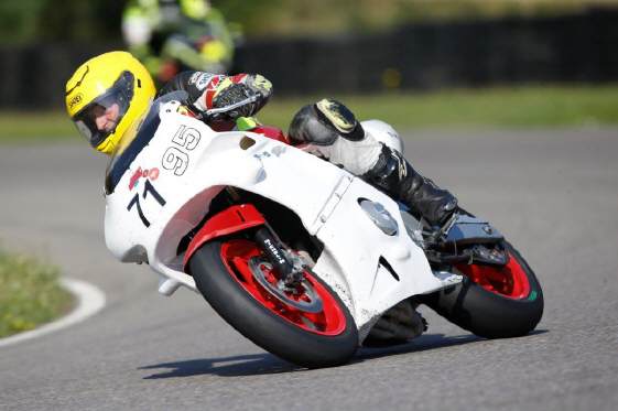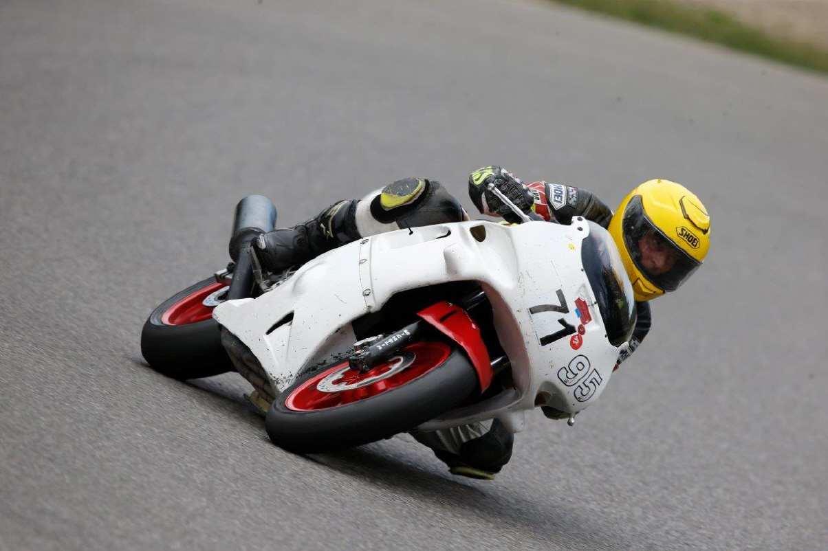 Ich nahm meine Yamaha RD 350 mit, die ich extra noch mit neuen rennstrecken-tauglichen Reifen ausgerüstet hatte, um auf der Piste erste Erfahrungen zu sammeln. Damit konnte ich schliesslich raus trotz Regen, wenn auch mit stark reduziertem Tempo. Nach dem Mittag ging es dann so richtig los und ich sparte mir den letzten Turn auf, um die RD jetzt auf trockenem Untergrund, aber mit neuen Reifen zu fahren. Es durfte nichts passieren, da ich ja die Maschine umbauen lassen will, um die Originalteile zu schonen. Von der Kraftentfaltung war ich (verglichen mit meiner 600er-4-Zylinder-Honda) etwas enttäuscht, ich hatte mir «das geile Eisen» etwas bissiger vorgestellt. Die Maschine drehte nur bis zu einem Punkt, dann war Feierabend und nur der nächste Gang machte einem schneller. Mal schauen, ob da sich noch etwas machen lässt. Ich bin ja auch nicht wirklich viel gefahren in diesem Jahr.