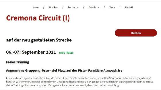 ab hier: Bericht und Bilder vom Rennstrecken-Training in Cremona/Italia 2021 |
