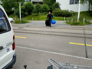 Yannis pochte auf einen möglichst frühen Start: Acht Uhr frühstücken, alles zusammenräumen und einpacken, so dass wir schliesslich um Viertel nach 9 Uhr abfahrbereit waren. Die Rückfahrt erfolgte über die angestammte Strecke, da es am Sonntagmorgen keinen Stau gibt. In Rheinfelden D machten wir noch eine kleine Stadtbesichtigung, doch auch da sind die Geschäfte am Pfingstmontag geschlossen. So ging es in umgedrehter Reihenfolge erst nach Dietikon, wo wir uns von Yannis verabschiedeten, dann nach Rümlang, wo wir Danis Töff abluden und er sein Auto mitnahm. Darauf mussten wir den leeren Hänger nach Oerlikon zurückbringen, dann an die Tramstrasse, den ersten Teil der Ladung loszuwerden, um dann an der Magdalenenstrasse den übrigen Teil abzuladen. Auf dem Rückweg nach Thalwil betankte ich noch meinen Bus, bevor ich alles übrige in Thalwil ausladen und ich den 3.Stock hochtragen musste. Es war etwa 15 Uhr, als ich das Auto parkieren konnte. Das ist der Preis eines solchen Rennweekends, viele Stunden vor und nach dem Event an Vorbereitungs- und Nachbearbeitungs-Arbeiten.