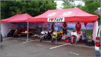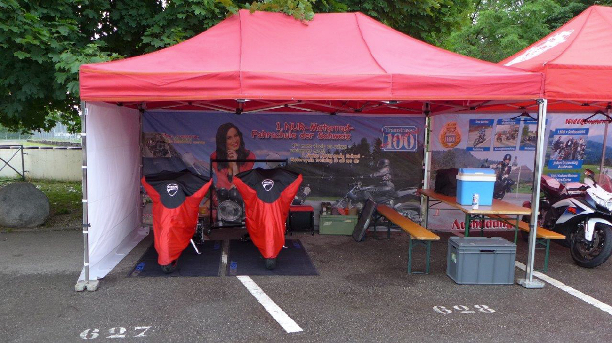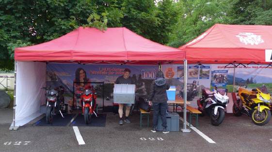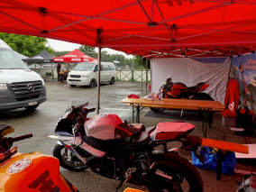 Da am zweiten Tag die Fahrerbesprechung nicht obligatorisch ist (nur für Neu-ankömmlinge), konnten wir etwas länger schlafen: Yannis weckte mich um 07.35 Uhr, nach der Dusche begab ich mich zum Frühstück. Die anderen waren schon länger auf. Wir trafen kurz vor halb 9 Uhr auf der Rennstrecke ein, und zuerst musste ich meinen Töff abholen. Alles war perfekt vorbereitet. |
