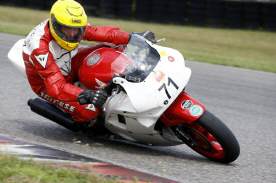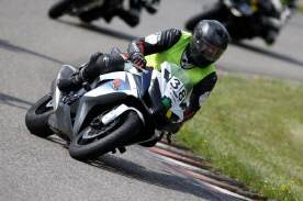 Erst startete die Gruppe gelb, dann, um 09.20 Uhr, war meine Gruppe rot an der Reihe. Schon beim Fahren zum Vorstart bemerkte ich erste Tropfen auf dem Visier. Da der hintere Slick nigel-nagel neu war, auch die Bremsbeläge sanft behandelt werden mussten, liess ich es ruhig angehen – doch, bevor es zur Sache ging, setzte in der 3.Runde heftiger Regen ein. |