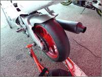 Er hatte sogar einen Hinterrad-Slick dabei in meiner eher exotischen Felgengrösse, so dass ich mich gleich wieder mit Ersatz eindecken konnte. Am anderen Morgen war mein Töff abholbereit, auch der neue Slick in Reserve. |