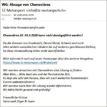 Chevenières/F definitiv abgesagt |