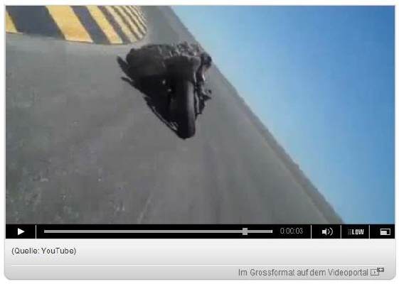 Ein Motorradfahrer rast mit seiner Maschine auf einer Rennstrecke in der Wüste. Und zeigt dabei, wie tief man in die Kurve liegen kann. Klicke auf obiges Bild! (durch Kostas Bairamakis darauf aufmersam gemacht) |