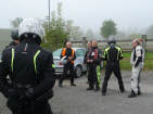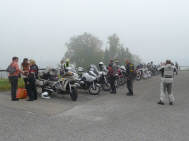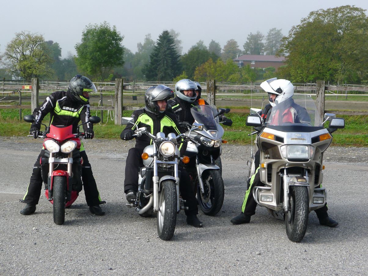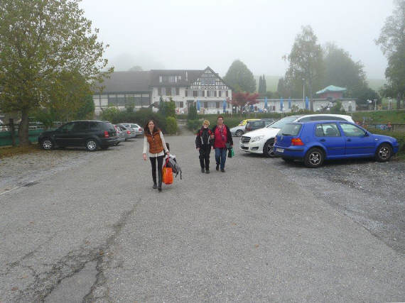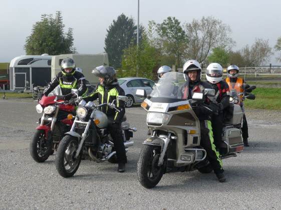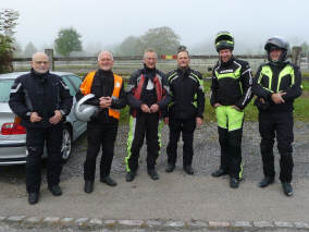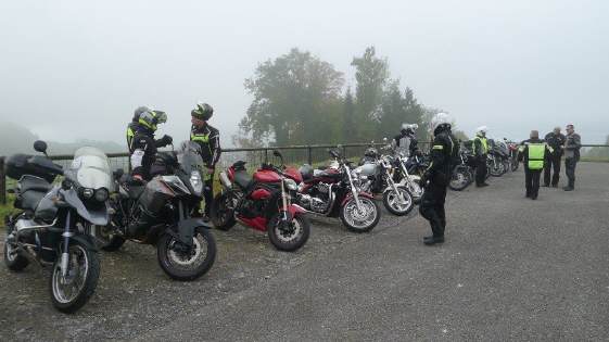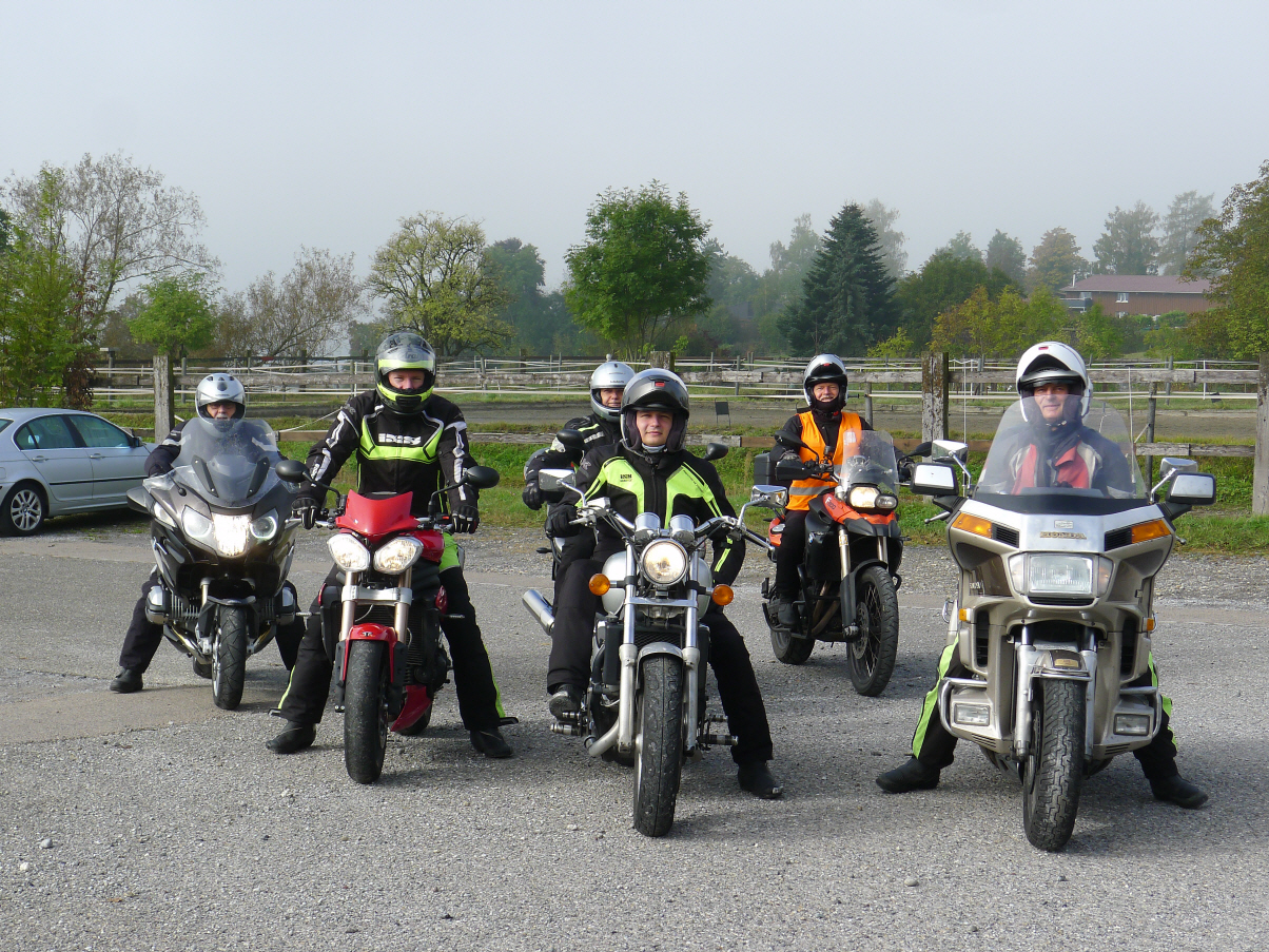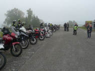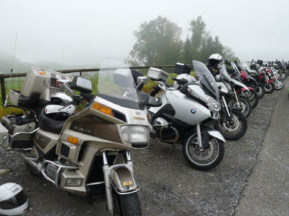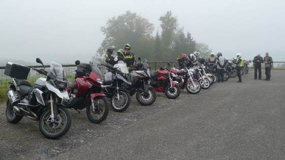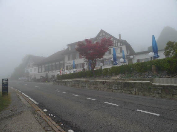Von der Fähre dem See entlang bis nach Stäfa dominierte weiterhin das Grau, aber über dem See machten sich erste Löcher bemerkbar, wo die Sonne drückte. Meine Hoffnung stieg, dass es bis zu unserem Start um 11 Uhr schönes Wetter sein dürfte. Als ich in der Wanne eintraf, war ich natürlich nicht der erste – aber immer noch rechtzeitig, um ein planloses Parkieren der Maschinen zu verhindern. So stellten dann alle den Töff auf den vorgesehenen Parkplatz unterhalb der Strasse. So konnten wir dann gut die Gruppen bei der Abfahrt bilden und mussten nur nach rechts einbiegen. Aber dies wussten ja nur die Tourguides, denn niemand ausser ihnen konnte ahnen, wo uns diese «Fahrt ins Blaue» mit unbekannten Ziel hinführen würde.