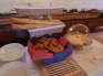 Mir blieb die Ehre, um 9 Uhr das Frühstücksbuffet zu eröffnen: Vorher hatte ich traditionell das Gebotene fotografiert. Anderes Haus, anderes Buffet!