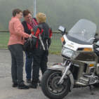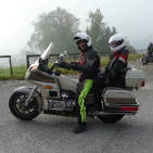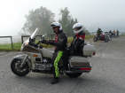 So startete ich diesmal mit einer frühen Fahrt auf der Fähre über den Zürichsee von Horgen nach Meilen. Grau dominierte auch diesmal, aber der Nebel lag tief und die Auflösungschancen standen gut, da er gar noch tiefer lag als es in den Prognosen angekündigt wurde. Milena, unsere Vespa-Fahrerin, musste an diesem Sonntag arbeiten und sie erklärte sich bereit, Sigrid bei uns in Thalwil abzuholen und sie mit dem Auto nach Stäfa zu bringen. So konnte Sigrid als Soziusfahrerin bei mir auf der GoldWing nochmals eine Schlussfahrt miterleben. |