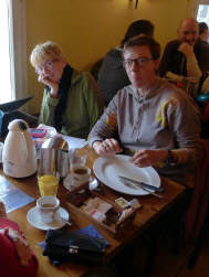 Da es für mich immer schwierig ist, dem Gastgeber die Anzahl von 20 Personen an Frühstücksteilnehmern zu garantieren, kommt seit Jahr und Tag auch Milly, im letzten Jahr zusammen mit ihrem Freund, zum gemeinsamen Frühstücksbrunch. Ihr Freund Edy hat eine schwierige Zeit hinter sich, da der Tumor im Halsbereich auf Speis- und Luftröhre drückt, so dass ihm eine Magensonde verpasst werden musste und er sich nun wie Sigrid künstlich ernähren muss.