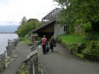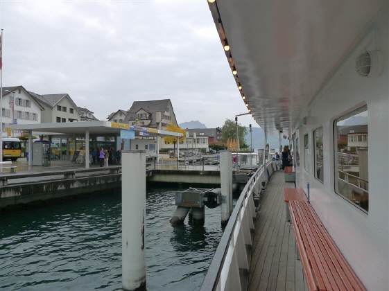 Mit dem Wirt konnte ich ausmachen, dass wir unsere Töffs bei ihm für einen Tag einstellen können. Also verlangte ich von Sigrid den Töff-Schlüssel und fuhr ihn in den Gaden hinter dem Wirtshaus. Danach folgte ich mit meiner GoldWing. Sigrid forderte ich auf, sich für die Weiterreise umzuziehen, denn das Programm ab jetzt war für sie eine Überraschung. Gerade rechtzeitig hatten wir unsere Töff-Klamotten im Anhänger der GoldWing verstaut, unsere Siebensachen zusammengepackt und begaben uns zum Landesteg, wo eine riesige Menschenmenge wartete. Wir stellten uns hinten an, in der Meinung, dass alle diese Leute aufs Schiff gehen würden. Dieses aber zog den Landesteg ein und fuhr bereits an, als ich den Matrosen zurief, ob das das Schiff nach Luzern sein würde. Da der Kapitän die Szene mitbekam, drosselte er die Maschinen und das Schiff legte erneut an, um uns aufzunehmen. So ein Glück! |