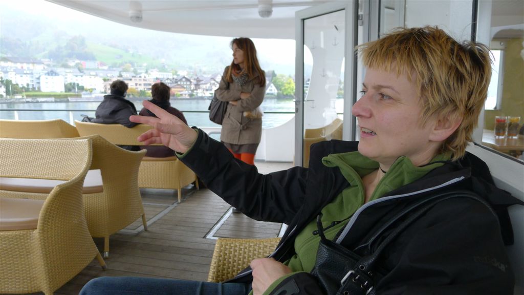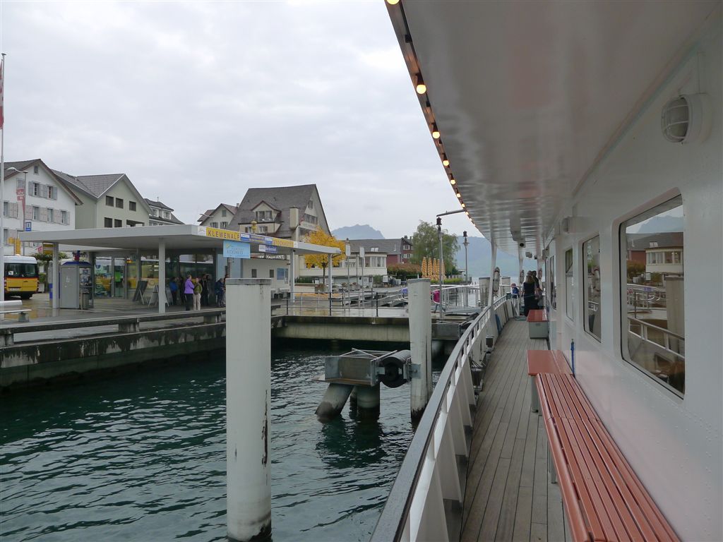 Nach dieser Aufregung gingen wir allen beteiligten Personen danken, dass sie so nett zu uns gewesen waren. Wir lösten unsere Billete und für Sigrid begann die Reise ins Unbekannte. Erst ging es nach Gersau, dann auf die gegenüberliegende Seite nach Beckenried, wo ein grosser Teil der Passagiere ausstiegen. Dann überquerten wir abermals den See und in Vitznau forderte ich Sigrid auf, sich für das Aussteigen bereit zu machen. Die Überraschung geht weiter ... |