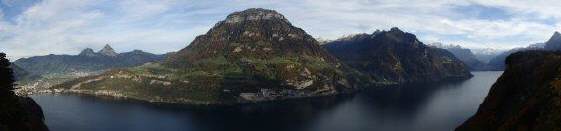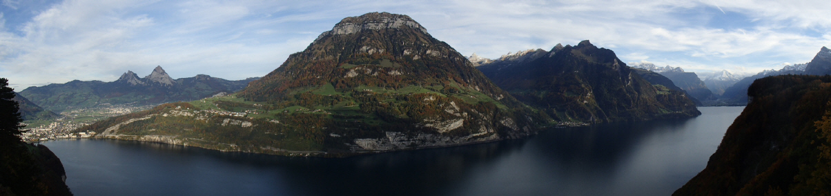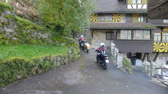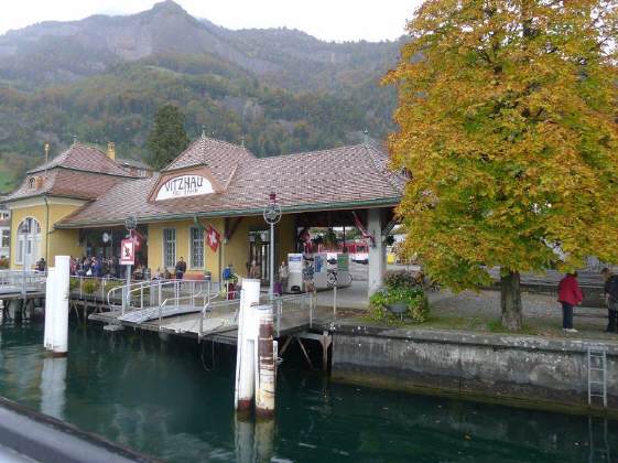 An diesem Morgen war der Wechsel auf Winterfahrplan vorgenommen worden: Im Unterschied zum Sommer gibt es nur noch 3 Möglichkeiten, mit dem Schiff direkt zu unserem Ausgangspunkt zu fahren. Hätten wir dieses Schiff verpasst, wäre es sehr beschwerlich geworden, zu unseren Motorrädern zurückzukehren. Wir genossen bei schönstem Herbstwetter die ruhige Rückfahrt über dieselben Stationen, diesmal immer die beiden Mythen vor uns. In der Treib ging es montags bedeutend ruhiger zu und her als am Sonntag. Der Chef stellte sich in die Küche und zauberte ein Wildschein-Ragout auf den Tisch. Dann mussten wir uns wieder umziehen, bevor wir uns verabschiedeten und uns auf den Nachhauseweg begaben.