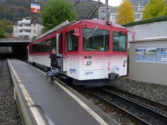 Direkt bei der Landungsstelle in Vitznau ist der Bahnhof der Vitznau-Rigi-Bahn. Auch dort musste ich ein Billet lösen. Nun war es für Sigrid klar, dass es also auf die Rigi ging mit ihrer Geburtstagsreise. Für mich war es, abgesehen von unseren Donnerstagsausflügen auf die Seebodenalp und der Alp Alt Ruodisegg, das erste Mal in meinem Leben überhaupt, dass ich auf die Rigi ging – diesmal war es erst mal Rigi-Kaltbad, Rigi-Kulm muss noch auf mich warten! Im Hotel Rigi-Kaltbad, das komplett renoviert worden war, erwartete das von Mario Botta gestaltete Mineralbad und Spa. |