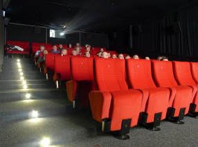 Als wir als erste Gruppe bei der CINEBOXX eintrafen, erwartete uns Milly mit dem Fotoapparat: Die «Autofahrenden» waren schon etwas früher da und hatten es sich im Foyer dieses modernen Kinos bequem gemacht. Franz Kälin und seine Frau empfingen uns hier zum Apéro und zur Sondervorstellung des Kinofilmes «Die Strassenflieger» (1986), welcher er mit dem Einsiedler Motorrad-Club gedreht hatte. Es war eine lange Vorgeschichte, bis es jetzt endlich klappte. Mein 25.Jubiläum war der ideale Anlass und, wie es sich herausstellte, die herrschenden Wetterverhältnisse taten das ihre dazu: Wer würde schon gerne an einem Tag, den man dem Motorradfahren widmen wollte, für 70 Minuten in den Kinosaal sitzen, um sich ein paar alte Aufnahmen von der Töff-Welt von damals anzuschauen? Der Film ist aber so witzig gemacht, dass sich niemand langweilte. Auch hat es Franz Kälin, Regie und Kameramann in Personalunion verstanden, mit dem Fokus seiner Filmkamera wunderbare Bildeinstellungen zu finden und, oft in verlangsamten Bildern, ein Teil der Faszination, was das Töfffahren eben ausmacht, aufzuzeigen. Die Story, wie jemand, der überhaupt nichts mit Töff zu tun hat, schliesslich im Töff-Klub aufgenommen wird, ist der rote Faden, der sich durch den Film durchzieht. Auch die Sportwelt, mit dem Rothenthurmer Moto Cross, sowie ein paar Einspielungen von Aufnahmen auf dem Salzburgring und von Trialfahrern und der eigens inszenierten Töfffahrt im Winter in dieser Innerschweizer Landschaft – echt «cool», mit vielen Überraschungen gespickt! |