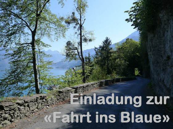 Unter dem Motto: «FAHRT INS BLAUE» führt uns die Schlussfahrt an einen unbekannten Ort in der Nordostschweiz - einmal mehr wird es für wohl alle eine Überraschung sein, da wir ganz unbekannte Ziele ansteuern, neben dem gesellschaftlichen Teil - als Abschluss einer erfolgreichen und unvergesslichen DO-Ausfahrtssaison.