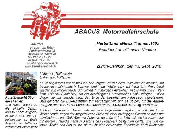 Link zum Allgemeinen Info-Brief an meine Kundschaft vom 13.Sept. 2018