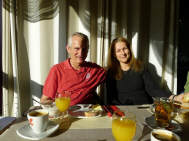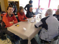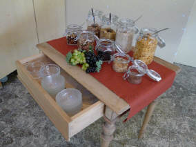 Milly war mit ihrer Schwester Rösli auch schon eingetroffen. Ich musste erst mal das Triopan aufstellen, damit die Ankömmlinge die Einfahrt der «Aussicht» nicht verpassten. Hier starteten wir nun zum zweiten Mal, weil die «Luegeten», unser Traditionslokal noch immer Streitobjekt und damit geschlossen ist. Nach und nach trafen weitere Personen ein. Danach musste ich das Frühstücksbuffet fotografieren. |