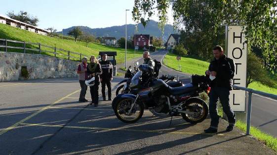 Während dem Essen erreichte mich die Nachricht Alberto, dass er mit seinem Töff gestrandet ist: Die herbeigerufene TCS-Pannenhilfe stellte schliesslich einen Kupplungsschaden fest. Eine andere SMS berichtete von einer Batterie ohne Ladung: Schade, Hans, es war bestimmt eine Schlussfahrt nach Deinem Geschmack ... Auch Hugo berichtete darüber, dass an seiner neuen GS die Batterie versagte: Allerdings hatte er das Glück, dass der Pannendienst mit dem aufgesattelten Töff noch 10 Minuten vor Ladenschluss beim Händler eintraf und er ein Ersatz-Fahrzeug bekam. |