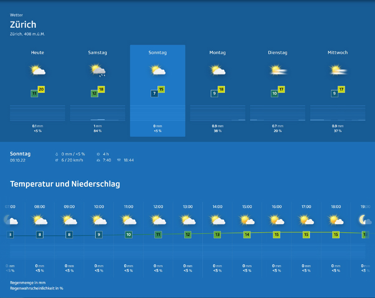 srf-Meteo Prognose für den Sonntag, 9.Okt. 2022 |
