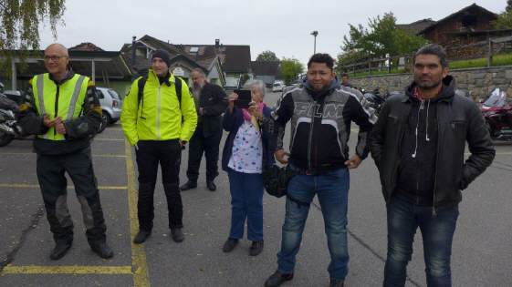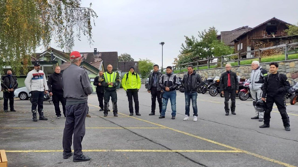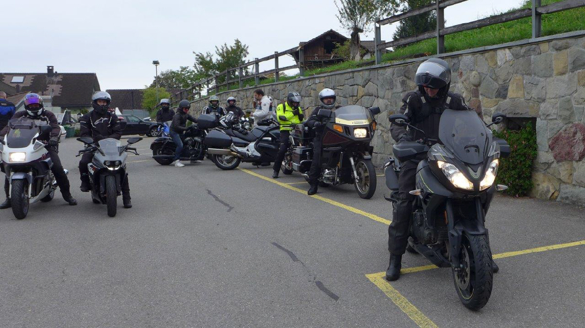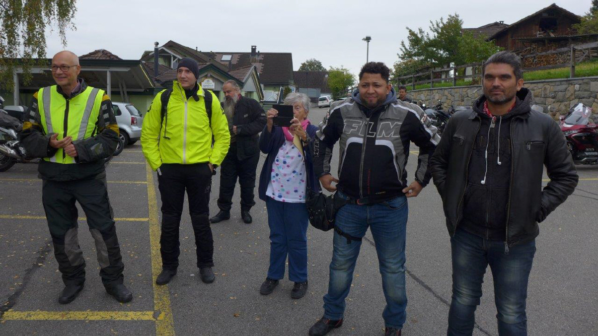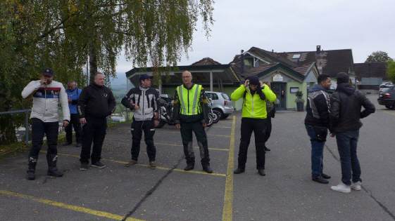 Dank Oberlandautobahn und anschliessender Autostrasse erreichte ich Uznach kurz vor halb 11 Uhr und konnte Milly den Bericht absetzen, dass es mir reicht und sie die Leute rausschicken kann. Ich hatte mich an der oberen Ecke des Parkplatzes installiert und begrüsste aus der Ferne die einzelnen Personen, die so nach und nach aus dem Restaurant traten. So gesehen war es keine Apokalypse, dieses Corona zur falschen Zeit. Nicht ich war das Problem, sondern die vielen, die noch nicht da waren. So traf Romeo und Simone erst um 10 vor 11 ein, anstelle aufzuwärmen, mussten sie sich gleich einreihen in die Gruppen, welche sich für die Abfahrt bereitgestellt hatten. So konnte trotz allem pünktlich zur Ausfahrt gestartet werden. |