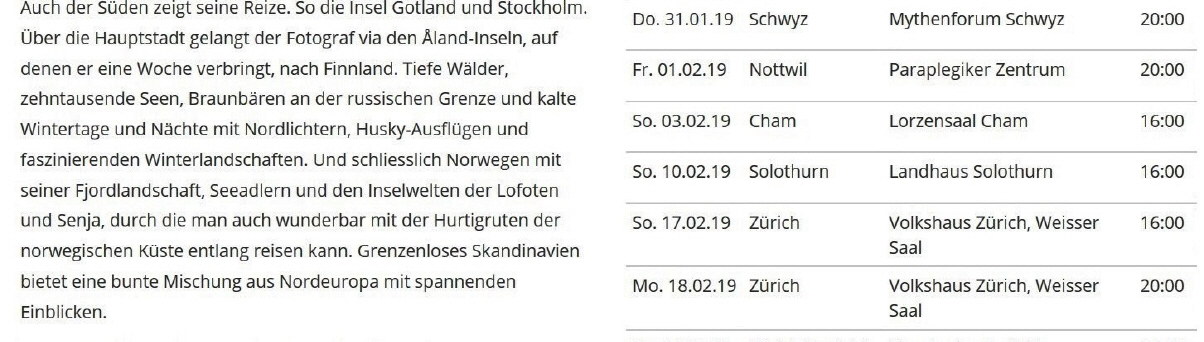 Am Mittwoch, 6.März besuchte ich zusammen mit Milly die neue Schau von Corrado: Milly, die vor Jahren mit ihrem Freund Edi die Hurtigrute bereist hat, war ganz begeistert über die Schau. Ich selbst war am 15.8.1979 am Nordkapp, damals mit meiner ersten GoldWing, und kannte auch viele der Orte, die an diesem Abend vorkamen. Corrado ist ein begnadeter Fotograf: Er zeigt wunderbare Bilder, Filme mit toller Musik und gibt entsprechende Tipps, die den Zuschauer eventuell Ideen für Ferienreisen wecken - er zeigt wunderbare Orte, an die normale Reisende nie hinkommen würden. Der Besuch seiner neusten Multivisions-Schau ist in jedem Fall sehr lohnenswert! |