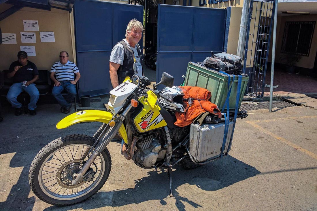 Immer wieder hat sich Aschi (58) mit seiner nach Che Guevara‘s Töff genannten Pederosa 2 bei seinen Ausflügen in die Natur auf die Äste hinaus gewagt, die mitunter mit seiner überladenen Suzuki zu Stürzen führte. Auch ein Strassenunfall verlief glimpflich, ohne Schaden am Töff, Ausrüstung und Gepäck. Die ganze Reise ist geprägt von Wiederbegegnungen, da Aschi schon mehrere Reisen in diesen Kontinenten, zum Teil auch als Reiseleiter, unternommen hat. Das gibt der Liveshow einen ganz eigenen Touch - so steht seine Pedrosa nun in Kalifornien bei seinem Freund Barry zum Verkauf, der ihm sein erstes Fahrzeug, einen Pickup-Truck aufgebaut hatte, mit welchem er seine erste Reise zusammen mit seiner Frau Ruth auf der Panamericana bis nach Patagonien unternahm. |