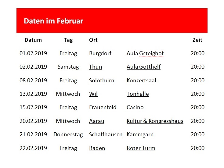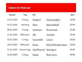 Termine, Standorte und Zeiten |