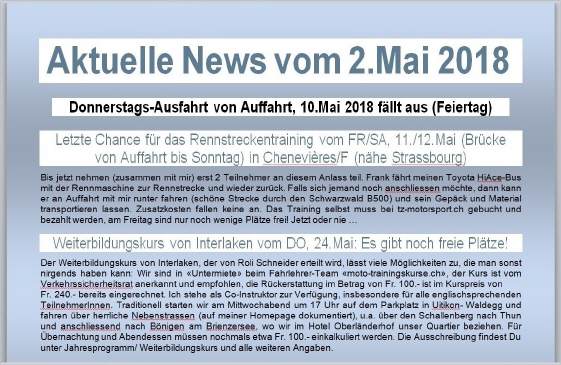 AKTUELLE NEWS vom 2.Mai 2018 |