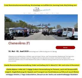 Wir sind bereits zu viert - das Hotel ist reserviert, wir fahren am Vorabend, am 15.Aug. nach Anneau du Rhin mit Bus (Gepäck, Material, Rennmotorräder) und den Maschinen «on road»! Es hat noch Platz für weitere Teilnehmende ... Mehr dazu hier