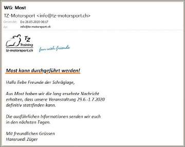 Übernächste Veranstaltung: Rennstrecke Ende Juni |