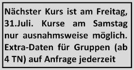 Voraussetzung: KT1 besucht, ganztägiger Kurs für Fr. 220.- bei max. 8 Teilnehmern