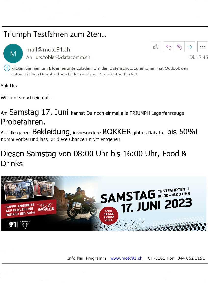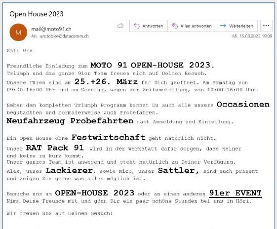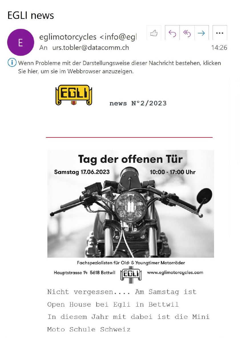 Über Pfeil oben rechts «Weiter» zu «Aktuelles von der Töffhändler-Front» |