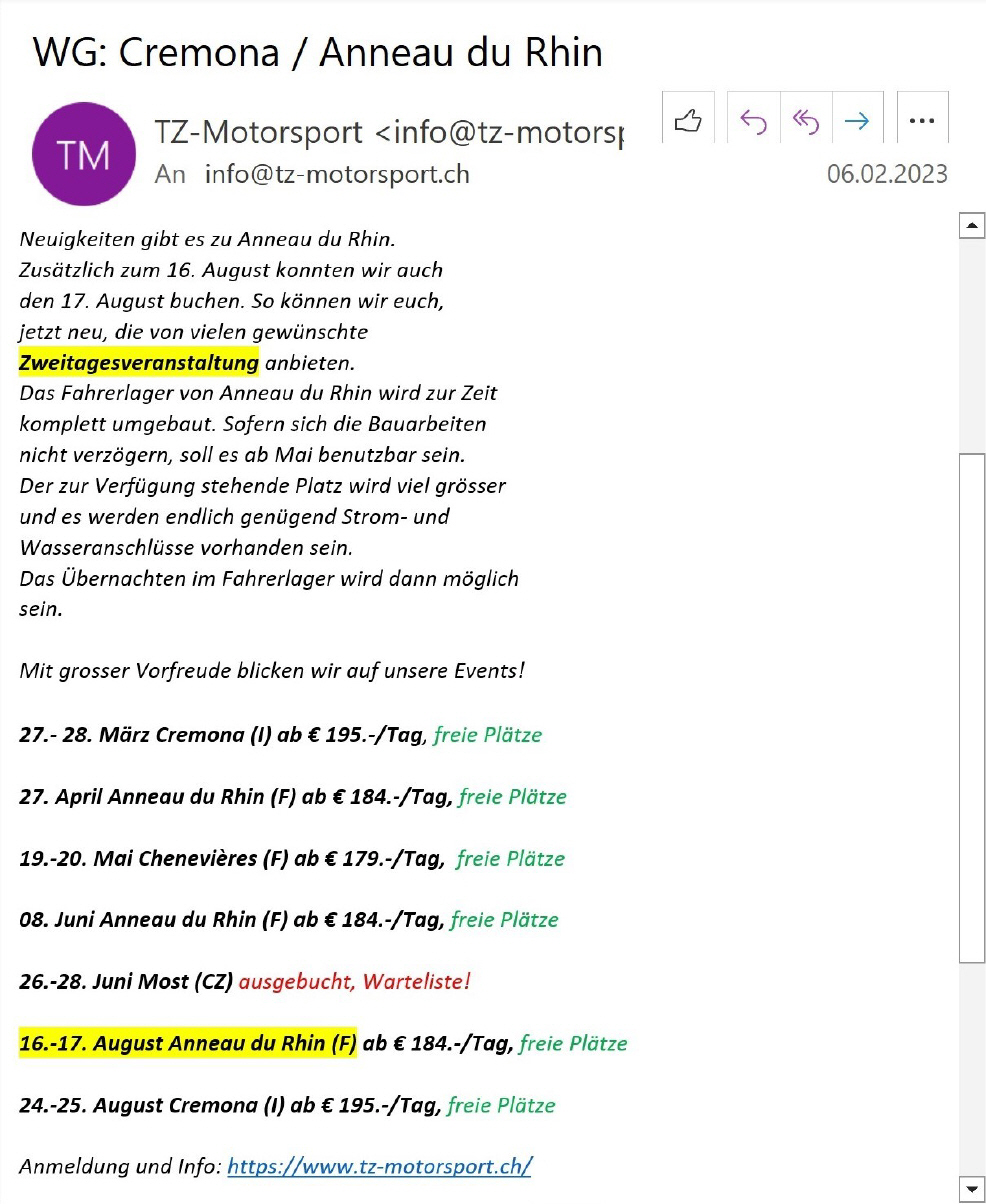 Zusatztag bei tz-motorsport.ch in Anneau 2023 |