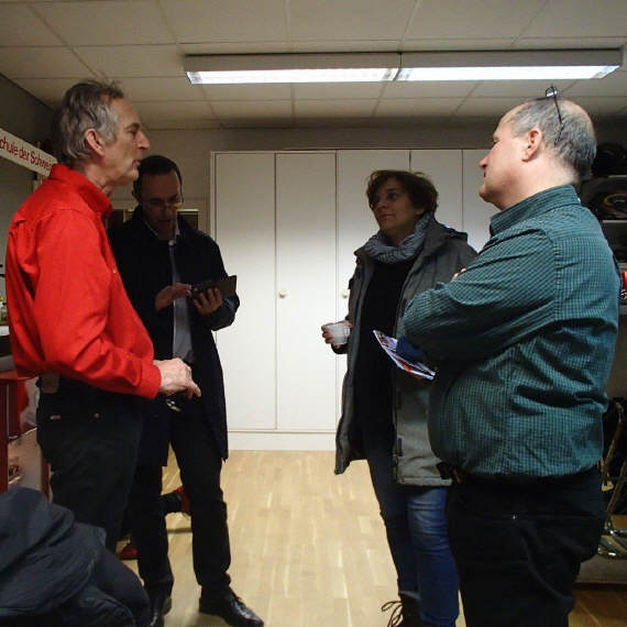Der Wunsch ging in Erfüllung: Am zweiten Abend kamen deutlich mehr Besucher ... Schon kurz nach vier traf als erster Mike Hill ein, diesmal ohne Familie: Er hat, wie seine Frau Christel, die Prüfung genau im Moment des Umbaus an der Tramstrasse 100 abgeschlossen. Philipp, der als nächster eintrat, war mein erster Fahrschüler dieses Jahres, der mit seinem Grossroller die Prüfung bereits absolviert hat. Nach und nach trudelten weitere Gäste rein, Kunden von 2019 genauso wie andere, die seit Jahren treue Teilnehmer sind. Wir hatten alle Hände zu tun. Auch an diesem Abend wurde der Käse sehr gelobt, so gingen alle wieder zufrieden nach Hause.