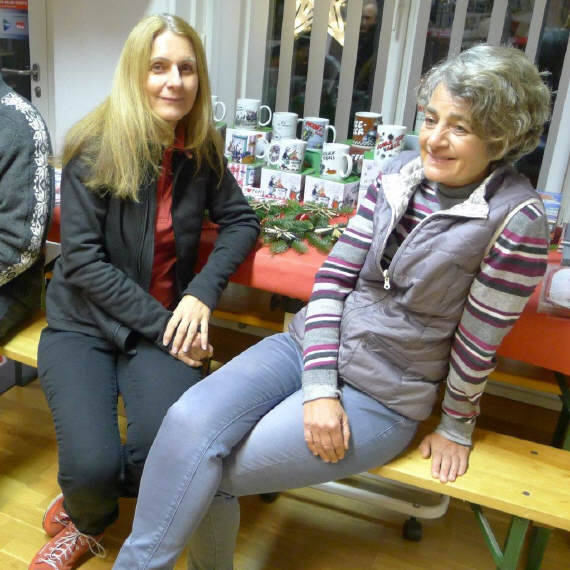 Die beiden Helferinnen v.l. Theres und Karin, Urs ist für das Raclette verantwortlich.