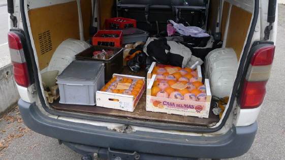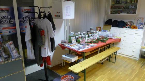 Während des Abends tröpfelten so nach und nach die ersten Besucher ein. Als Erste trafen Peter & Silvia ein. Sie sind beide pensioniert, sie hatten früher mehrmals bei 1.Mai-Rallies als Helfer Einsatz geleistet. Die angebotene Verpflegung lehnten sie ab, nahmen aber gerne das Angebot der «Casa del Mas»-Orangen als Geschenk an. Ebenfalls nahmen sie 2 motomania-Kalender mit.