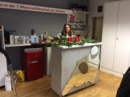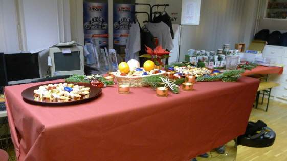 Diesmal liefen die Vorbereitungen weniger gestresst ab, da Karin und ich bereits 10 Tage aus den Ferien zurückkamen. So blieb mir auch genügend Zeit, etwa 120 persönliche Einladungen zu versenden. Den Montag und Dienstag nutzte ich, aufzuräumen (war notwendig!) und das Lokal zu reinigen. Am Dienstag traf Gregor ein, um alles was elektrisch war, einzurichten. So mussten meine beiden Helferinnen am Mittwoch nur noch schmücken und um war alles perfekt um 4 Uhr, bereit für die eintreffenden Gäste. |