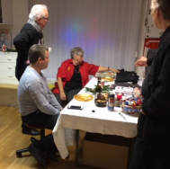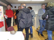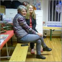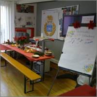 Wir blieben am ersten Abend fast unter uns: Organisatorisch war alles perfekt, das Lokal von den beiden Helferinnen, Karin und Theres wunderbar geschmückt – um 4 Uhr waren wir bereit für die eintreffenden Gäste. Draussen im Schulgarten waren Urs und Gregor noch am Einrichten, denn für’s Raclette reicht es in der Regel, um 5 Uhr bereit zu sein. Schliesslich trafen die allerersten Gäste ein. Auch dem Helferteam brummte inzwischen der Magen: Bald wurden wir von Urs bestens bedient, mit feinem Raclette, gekochten Herdäpfeln und den üblichen Zutaten wie Gurken, Silberzwiebeln und Maiskölbchen. Doch die wenigen Gäste gingen im grossen Raum fast unter. Nun wünschen wir uns einfach noch viel, viel mehr Gäste für den zweiten Abend! |