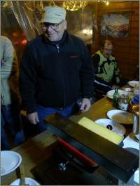 Urs hatte alle Hände zu tun: Einheitlich, auch an diesem Abend, wurde der Käse sehr gelobt. Ich hatte ihn wie in den Vorjahren bei Bannwart Käse in Oberrieden bezogen, die auch die Raclette-Öfen zur Verfügung stellten. Wer kalt hatte, kam nach dem Raclette wieder zurück ins Lokal, um sich aufzuwärmen. Schön, lauter zufriedene Gäste zu verabschieden. So gingen alle wieder zufrieden nach Hause.