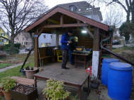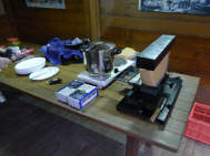 Am Montag starteten Karin und ich mit den Vorbereitungen - die gingen bis tief in die Nacht hinein. Urs und Renato trafen um halb 5 Uhr ein, um die Hütte vis-à-vis im Schulgarten leerzuräumen. Es war nicht die Hütte selbst, sondern der Vorraum dazu, welcher uns zur Verfügung stand. Alles was wir nicht brauchen konnten, luden wir in meinen HiAce-Bus ein. Anschliessend installierten sie den Schaufensterschmuck, eine zeitaufwändige Angelegenheit. Wir waren sehr froh um ihre Mithilfe.