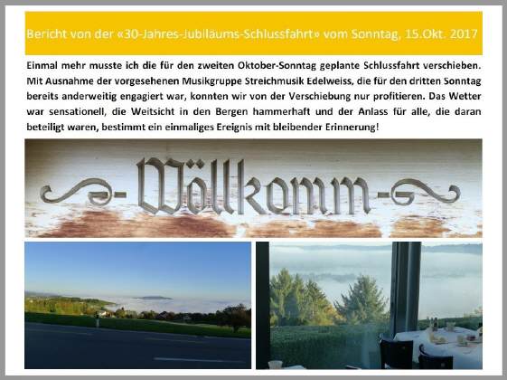 1.Bericht Schlussfahrt vom Sonntag, 15.Okt. 2017 |