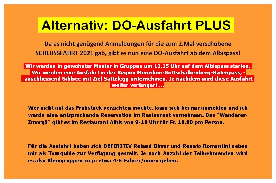 Schlussfahrt abgesagt, anstelle: DO-Ausfahrt PLUS |