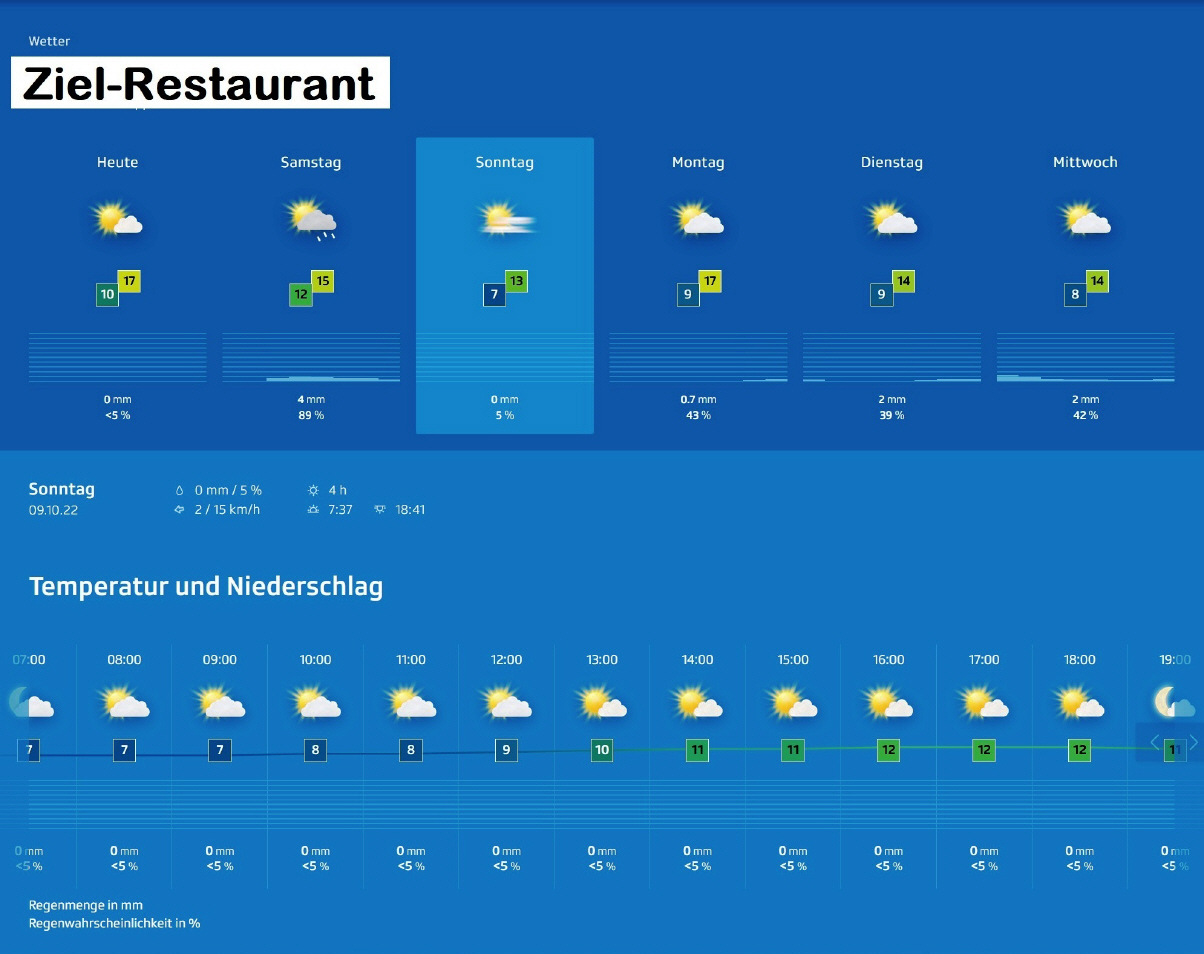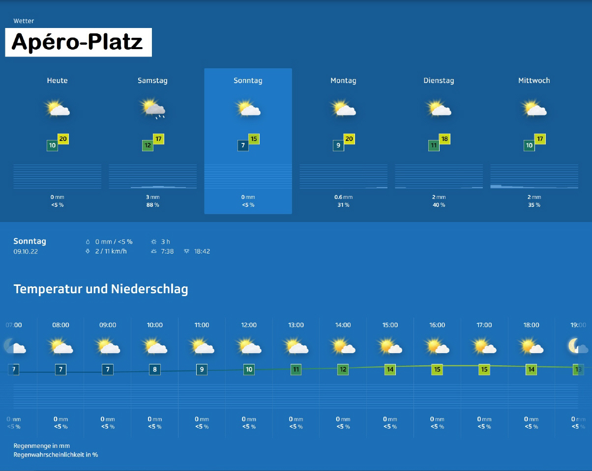 srf-Meteo Prognose für Apéro und Endziel: Rest. |