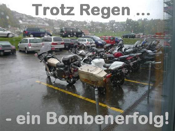 Meine Tourguides werden die Leute in Gruppen führen und je nach vorwärtskommen in der Gruppe die eine oder andere Zusatzschlaufe drehen. Nach etwa zwei Stunden Fahrt gibt es den Apéro-Halt. Danach geht es nochmals eine gute Stunde weiter bis zum Überraschungs-Ziel, dann ins Restaurant, wo man sich verspätet (freiwillig) Mittags-verpflegen kann. Auch in diesem Jahr wird die Fahrt von grandiosen Ausblicken auf die Landschaft leben, wie Du es nur in unserer schönen Schweiz finden kannst. Wenn das Wetter einigermassen mitmacht, dann wird es einmal mehr einen «Traumtag» geben zum Abschluss der diesjährigen Töff-Saison.