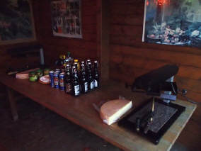 Raclette à discretion serviert von Urs im Blockhaus im Schulgarten vis-à-vis!