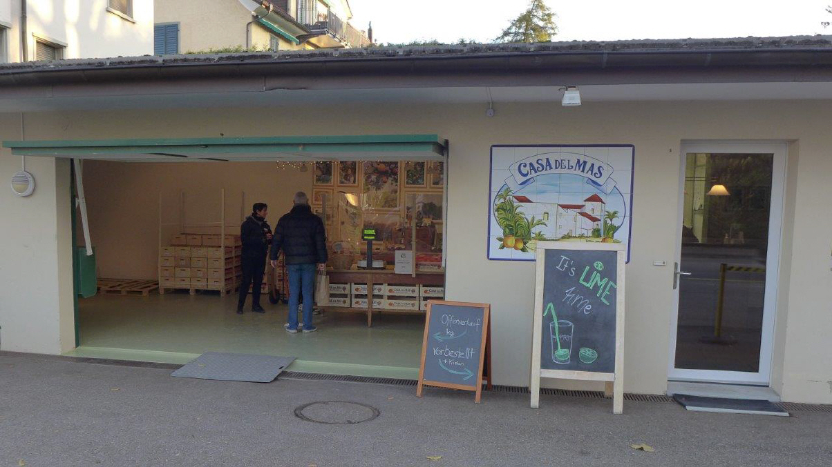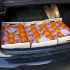Auf dem Weg ins Geschäft fuhr ich erst in Oberrieden zu «Ingrid's Chäsegge» für den Raclett-Ofen und den Käse abzuholen, dann über die Fähre Horgen-Meilen, um an der Seestrasse 175 in Küsnacht bei «Casa del Mas» die begehrten Früchte abzuholen. Diesmal bezog ich gleich 3 Kisten zu je etwa 9 kg. Dank des Wetters diente mein Auto-Kofferraum als Kühlschrank, denn die Menge an Getränken überstieg meine Kühlschrank-Kapazitäten. |