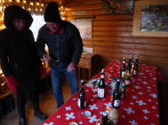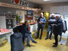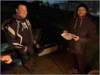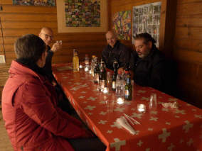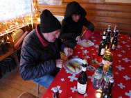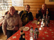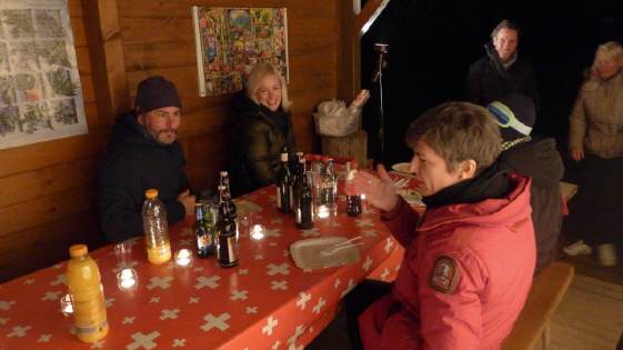 Trotz der grossen Kälte liessen es sich einige nicht nehmen, mit dem Töff zu kommen. Es war trocken, aber nur gerade etwa 2 Grad auch wegen des Hochnebels im Glatttal. Am ersten Abend hatte Romeo in Mircea einen treuen Helfer. Milly und ich zogen es vor, jeweils die Raclette-Portionen im Lokal an der Wärme zu essen. |