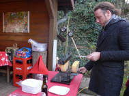 Die Gäste waren ab 14 Uhr eingeladen, das Raclette aber war erst für 16 Uhr vorgesehen. Beim Einrichten halfen einige Personen, bis alles richtig lief: Romeo, der sich zur Verfügung stellte, musste erst schauen wie alles geht und war froh für die Tipps. Bis es dann wirklich losging, war bereits Viertel vor 5 als die erste Pfanne mit den heissen Kartoffeln eintraf. |